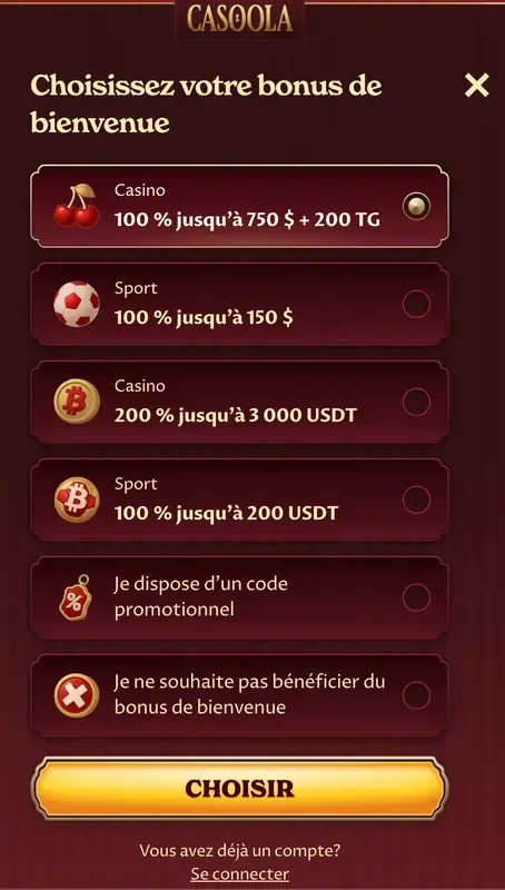 L'adhésion à la plateforme Casoola s'accompagne de plusieurs options de bienvenue, permettant d'initier les sessions avec un capital renforcé. Ces offres sont segmentées selon les préférences de jeu : d'un côté, une dotation substantielle pour les machines à sous et le casino en direct, et de l'autre, des crédits spécifiques pour les paris sportifs. La structure de ces avantages sur Casoola Casino est conçue pour offrir une flexibilité maximale, notamment avec des conditions de mise adaptées à chaque type de divertissement.